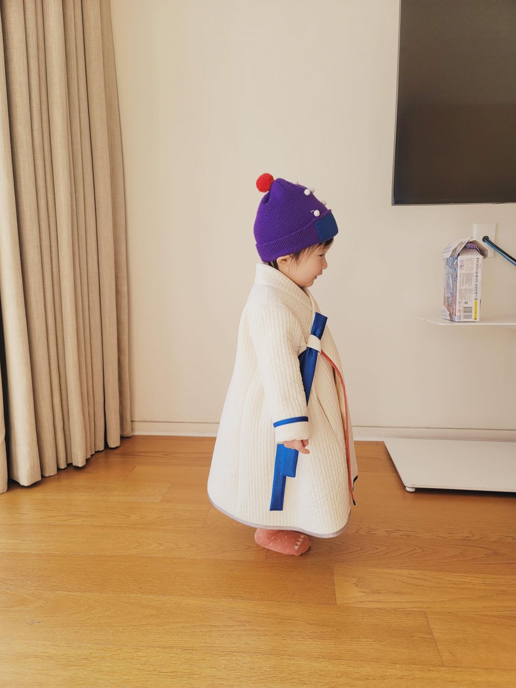 여유로운 품이라 두돌 전으론 플리스를 입고 두루마기 입혀도 꽤 괜찮았어요.