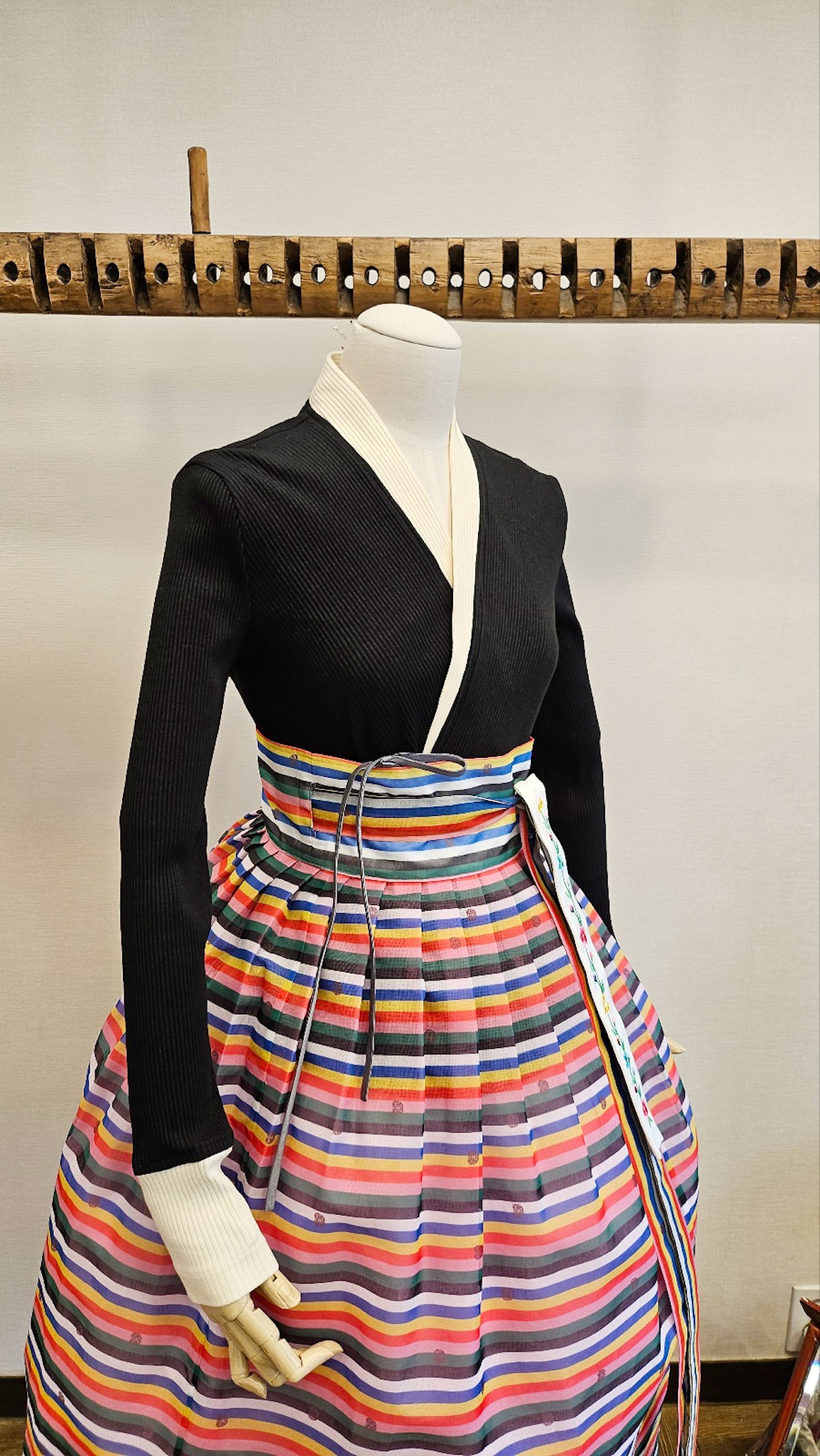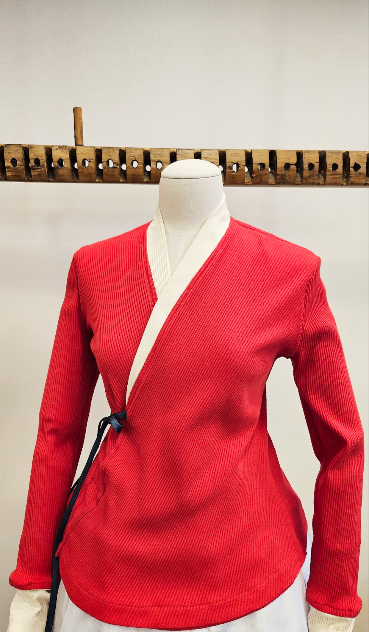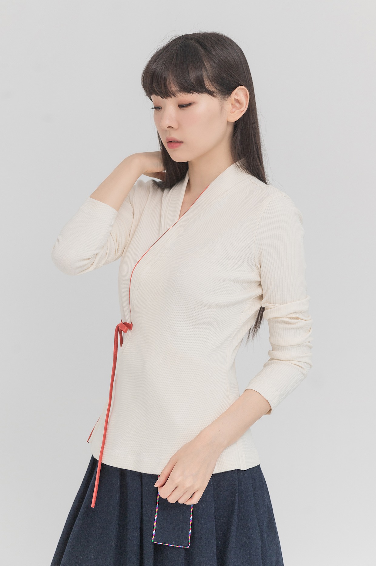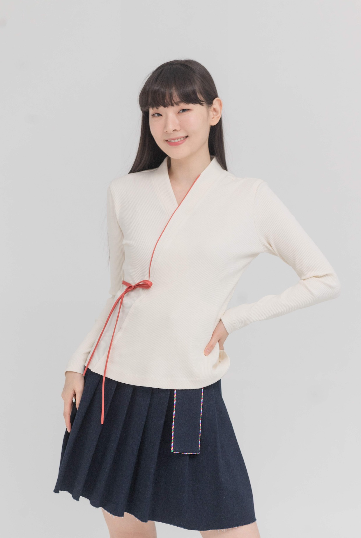이번 한복니트티는 새로운 형태의 저고리이며 많은 시간과 시행착오를 겪고 탄생한 우리만의 기술과 한국적인 미학이 명료하게 담긴 디자인입니다.