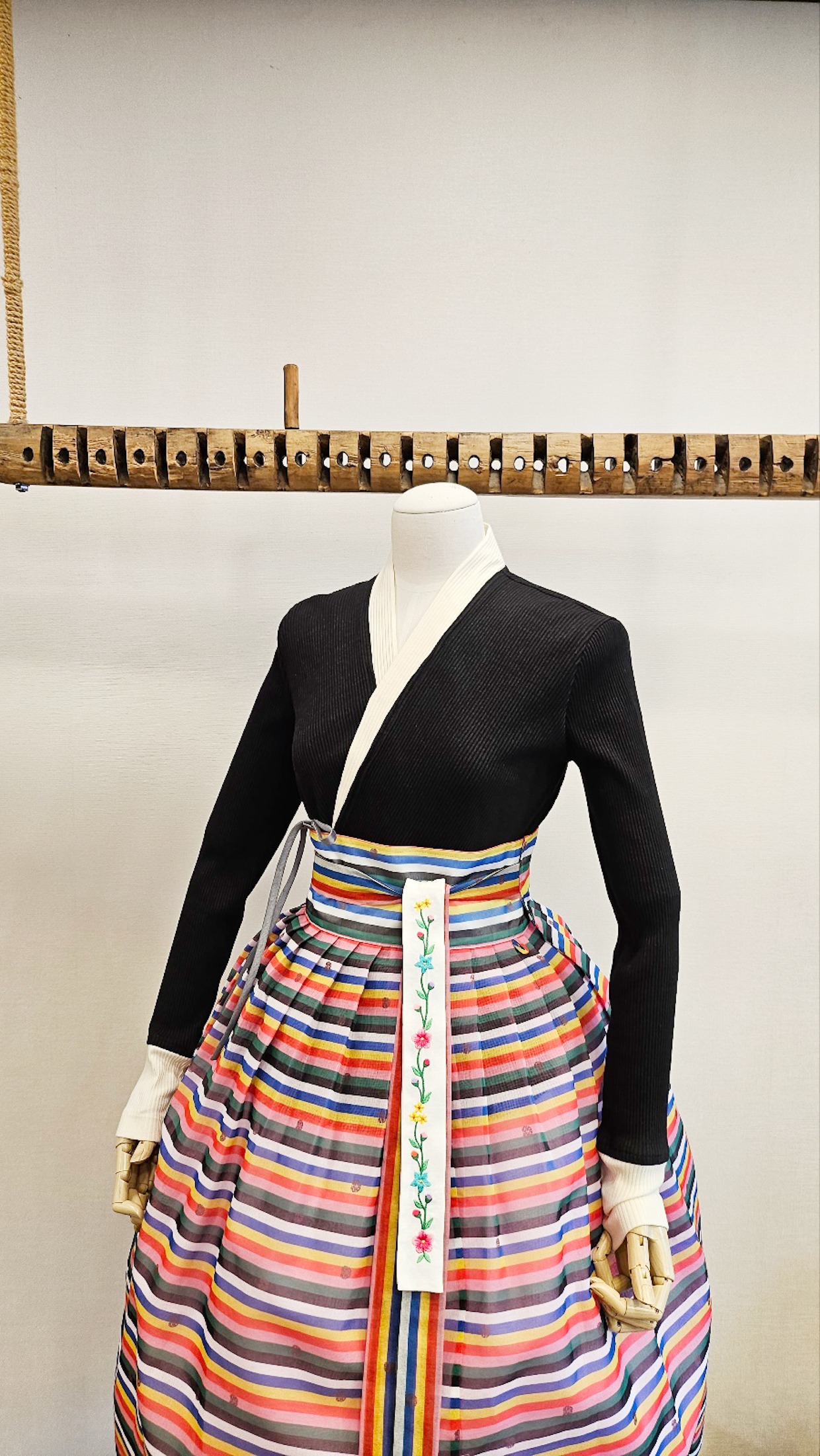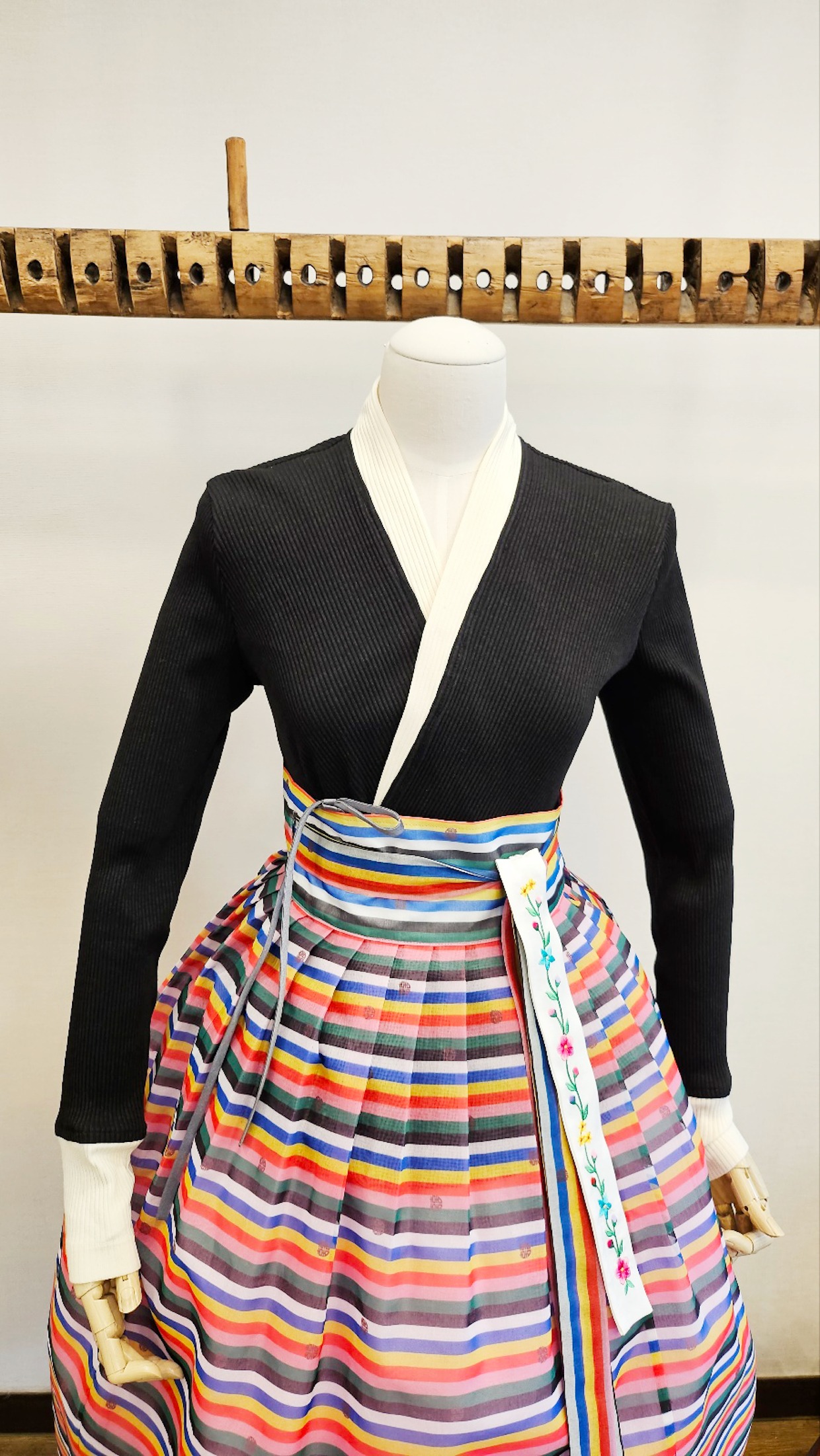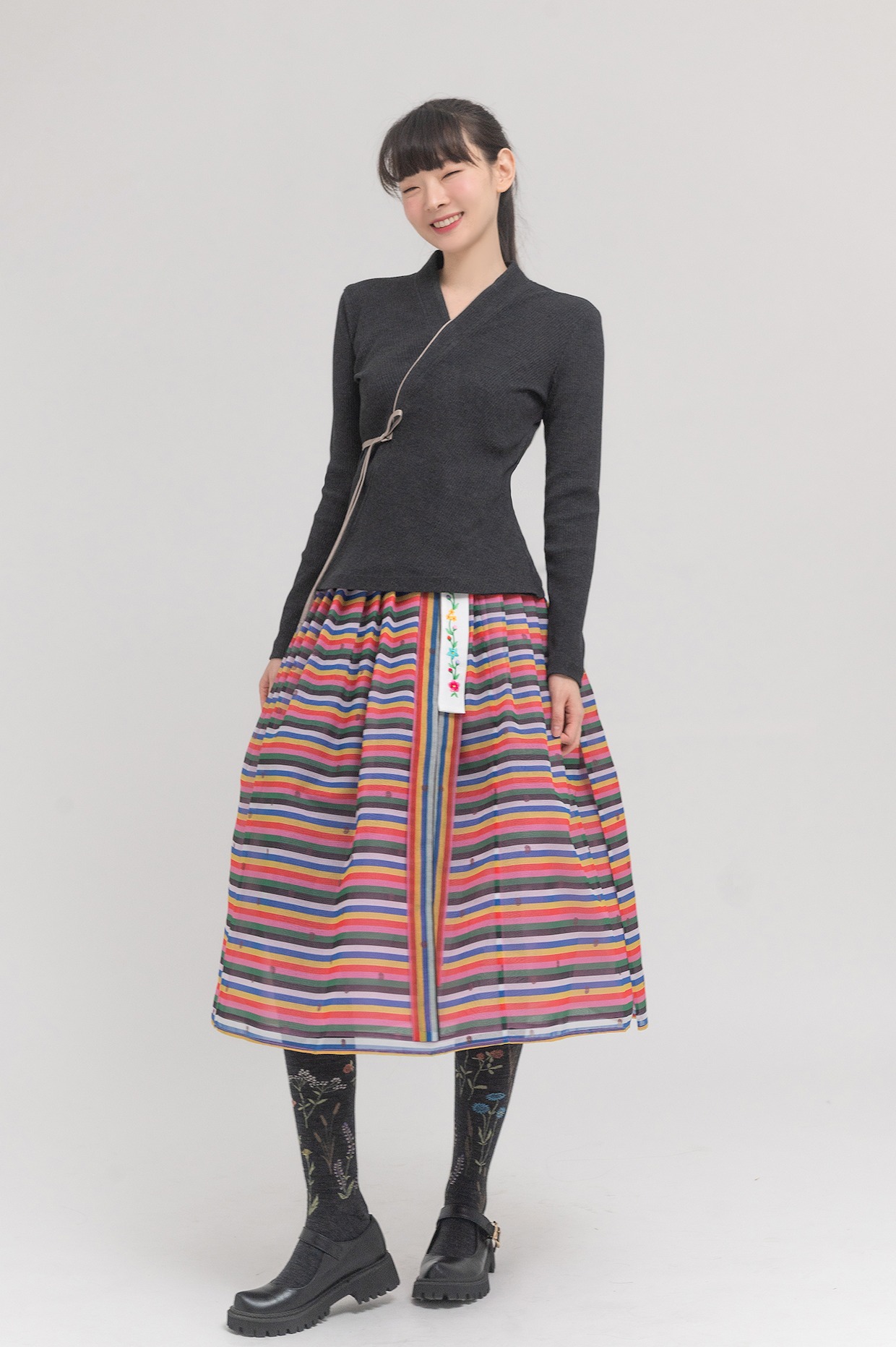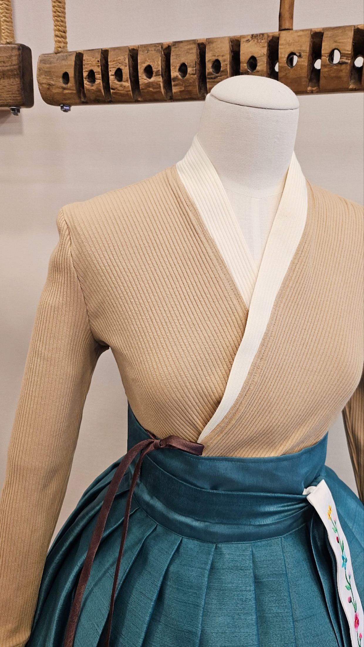 이번 한복니트티는 새로운 형태의 저고리이며 많은 시간과 시행착오를 겪고 탄생한 우리만의 기술과 한국적인 미학이 명료하게 담긴 디자인입니다.
