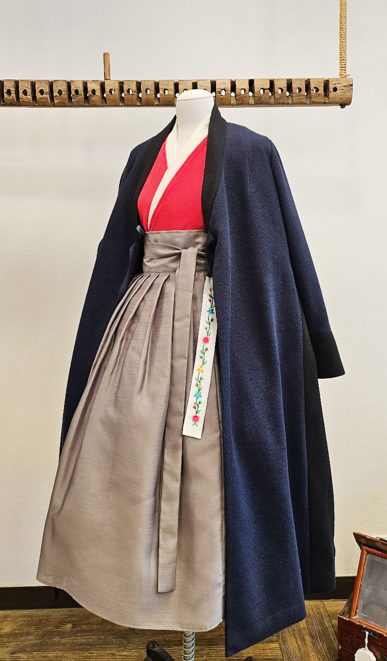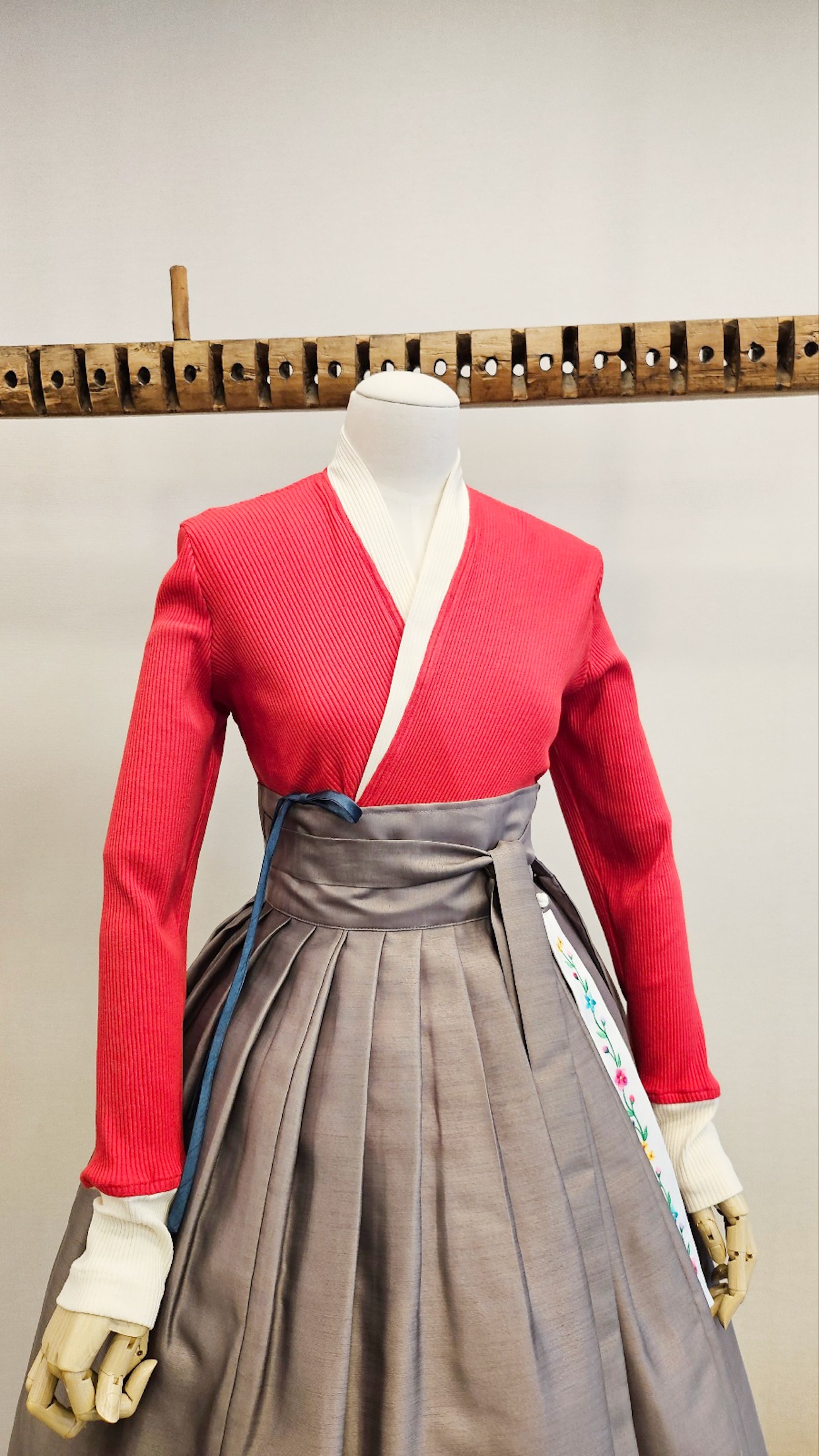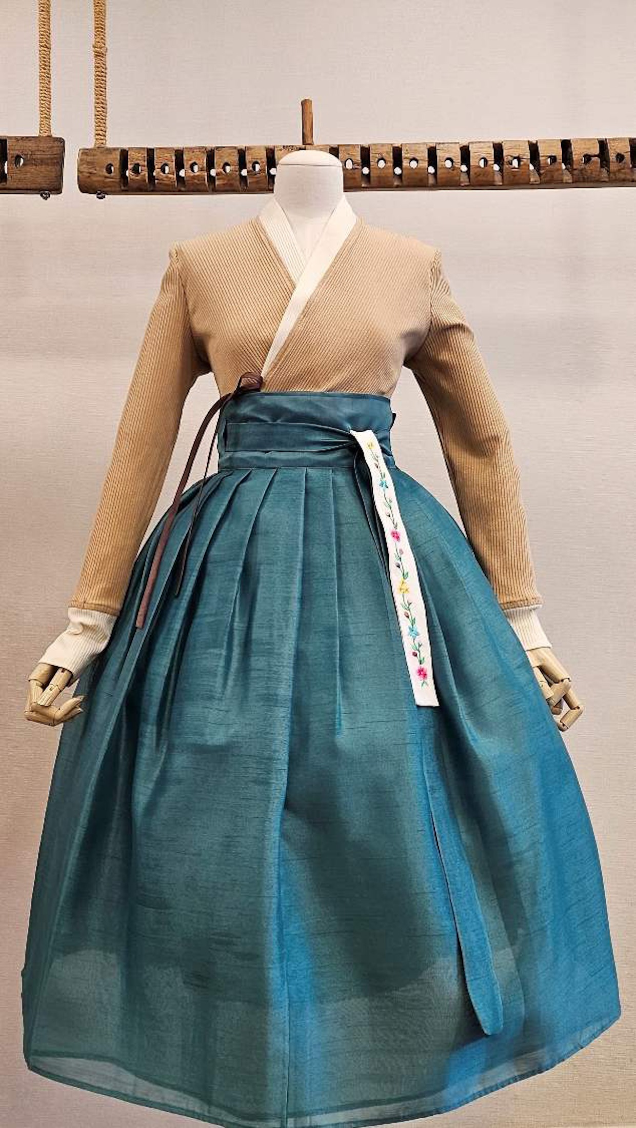 허리에서 고름을 묶고 골반쪽으로 갈수록 살짝 A라인으로 퍼지도록