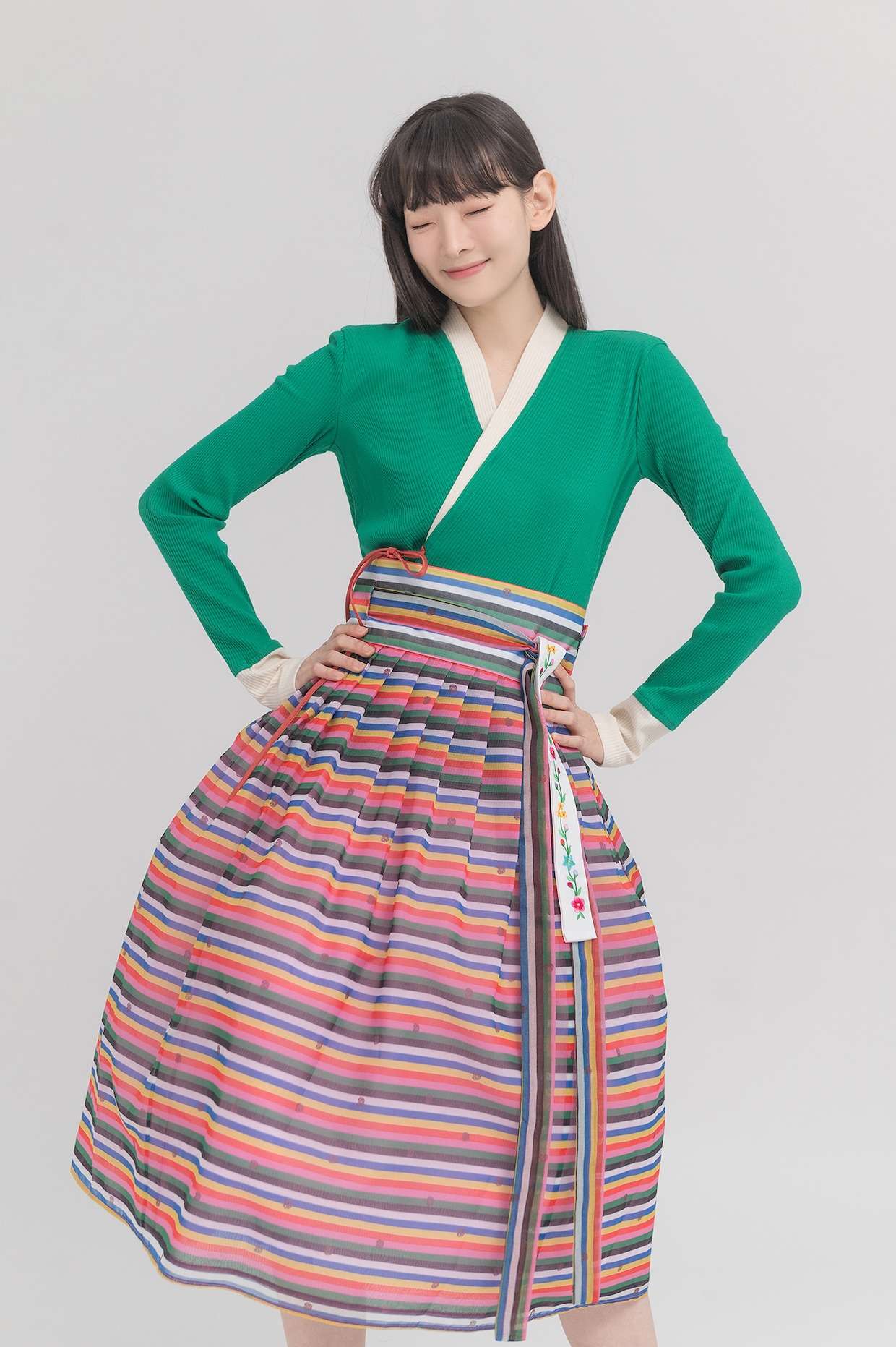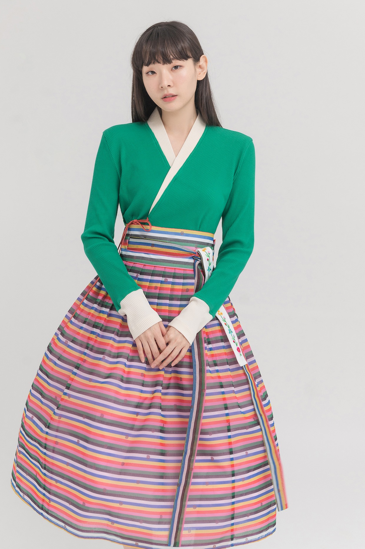 색동 치마와의 코디가 찰떡같이 잘 어울리며 모노톤을 좋아하는 분이라도 초록은 선호도가 높은 편인 그린 컬러입니다.