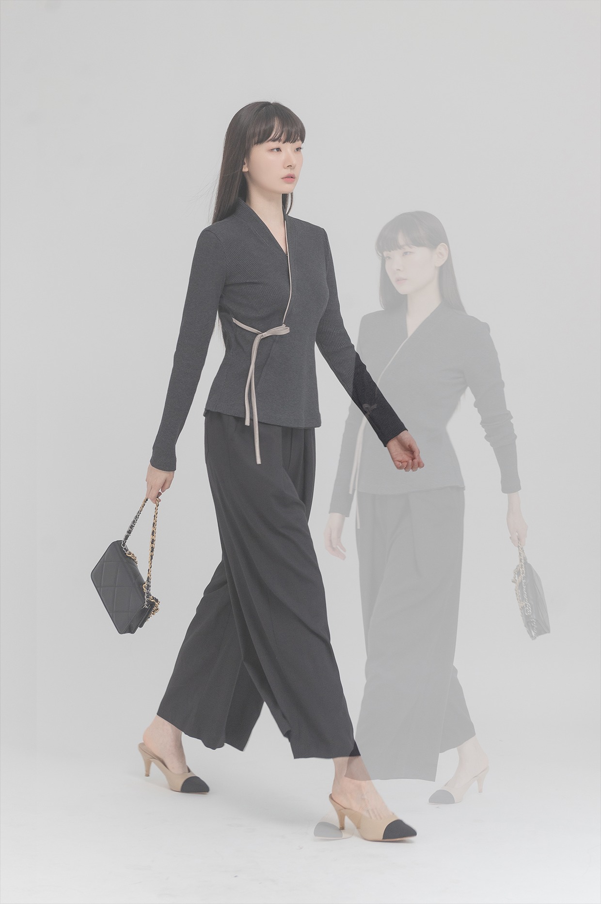 군더더기 없이 원단의 느낌과 컬러, 여밈 디자인등 디자인의 최소화를 지향한 저고리로 캐쥬얼부터 포멀함까지 다양한 룩의 무드를 극대화해줄 것입니다.
