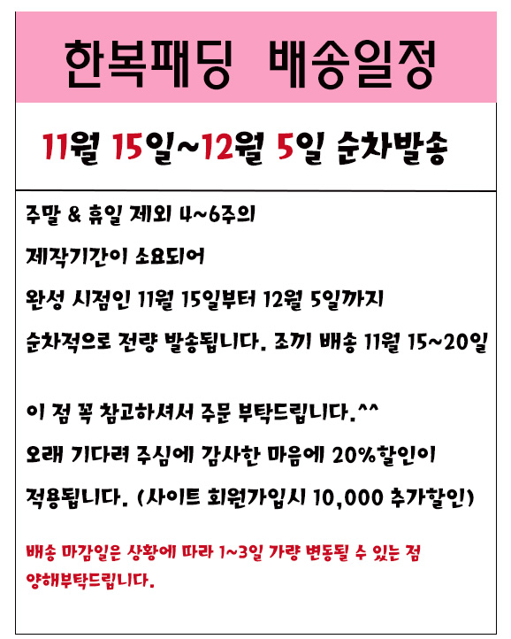 맞춤제작 상품이나 재고가 없는 상품은 종류에 따라 배송이 지연될 수 있습니다.