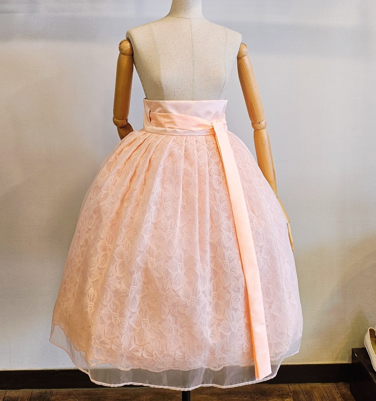 It is a three-layer skirt made by layering soft old tulle on fabric with three-dimensional embroidery of Lily Flowers.